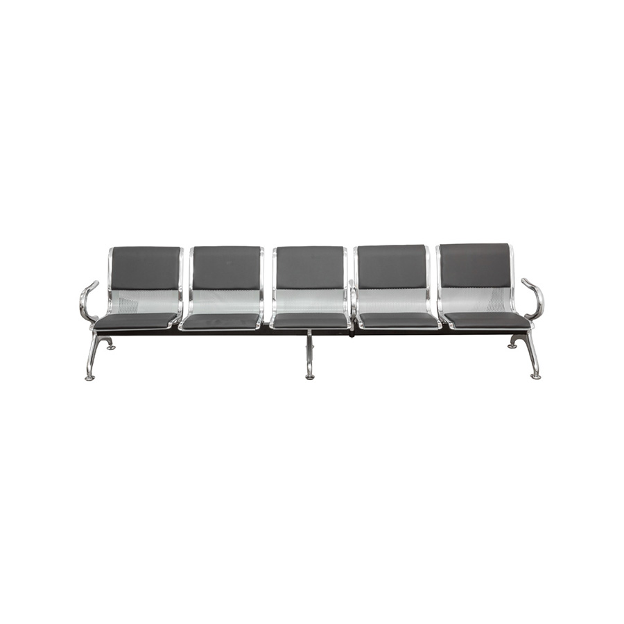 Longarina em aço cromado e chapa perfurada com assento e encosto acolchoado revestido em PU
