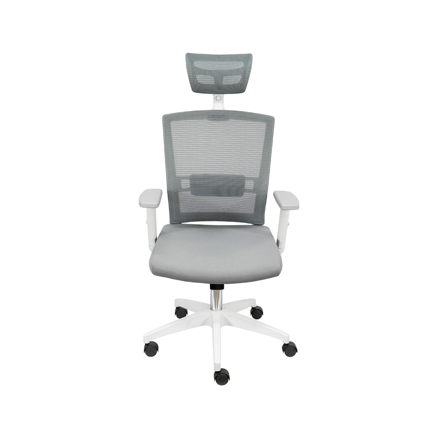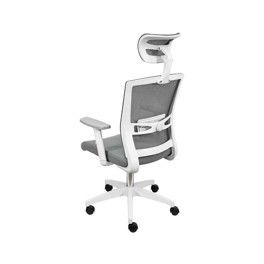Assento e encosto em tela mesh, estrutura em Nylon, rodas em PU que não riscam o piso, ajuste de braços, ajustes de lombar, apoio de cabeça ajustável, sistema relax com travamento.