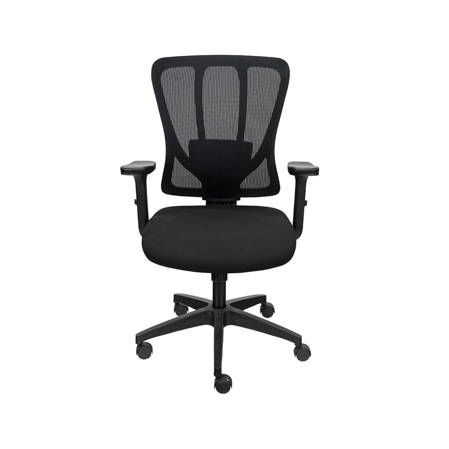 Regulagem de altura, regulagem de encosto, regulagem de braço, assento estofado, encosto em tela e sistema Backsystem.
