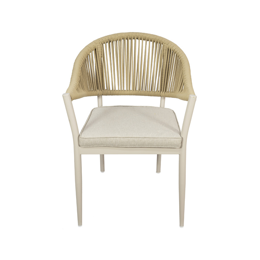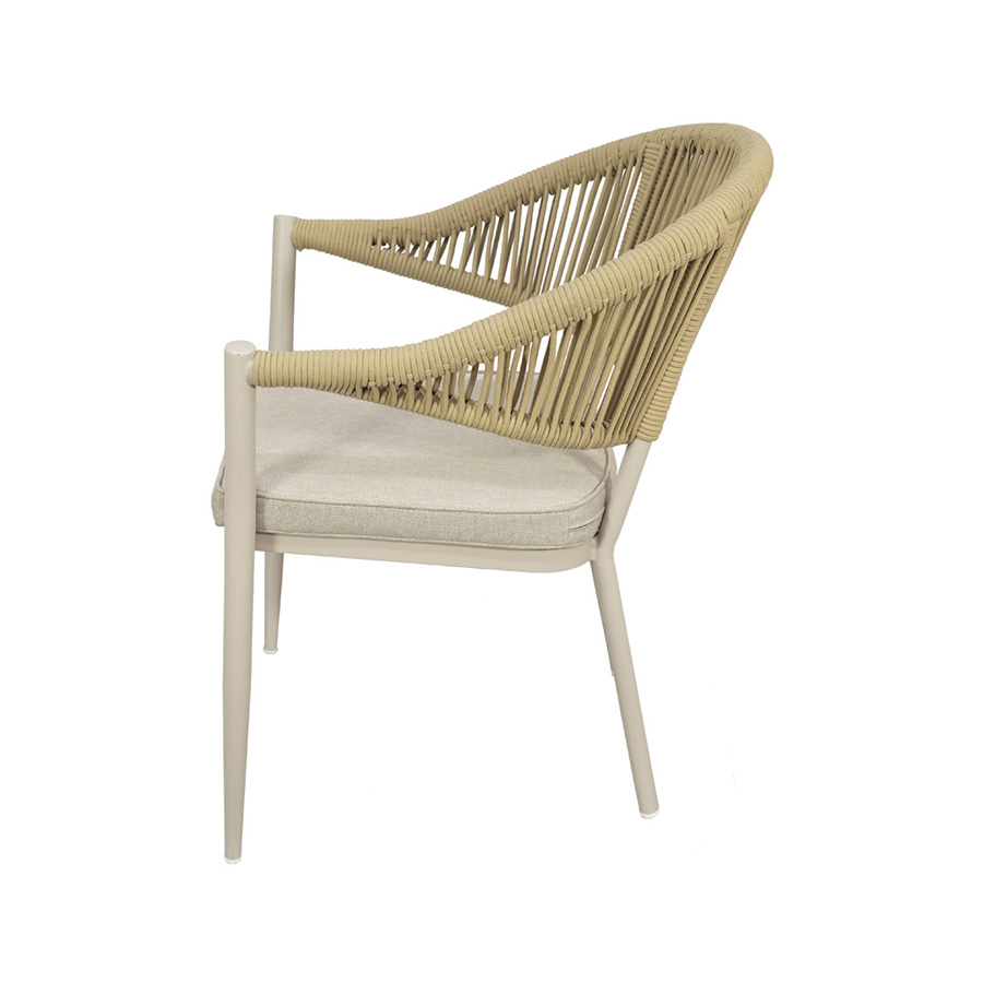 Estrutura em alumínio e corda náutica com almofada impermeável. Item para área externa.