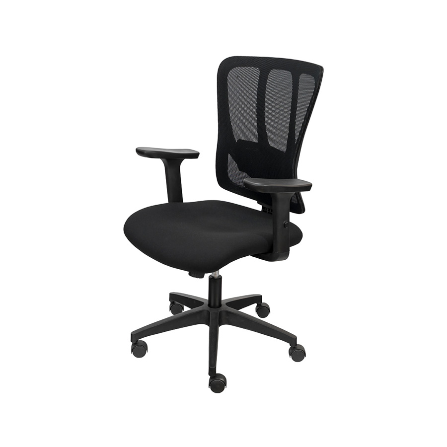 CADEIRA GENOVA PRETA ASSENTO EM TECIDO ENCOSTO EM TELA BASE NYLON RODIZIO