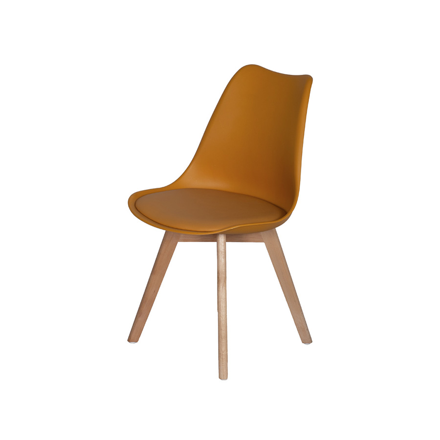 Banqueta em polipropileno com assento acolchoado e base em madeira