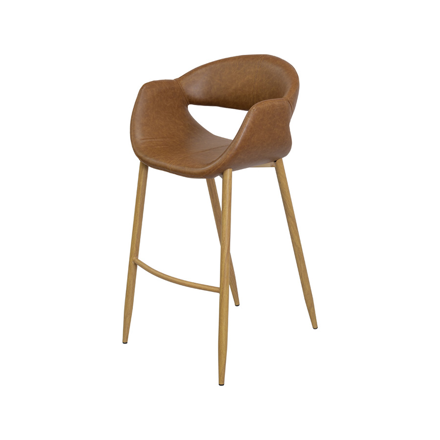BANQUETA LOIRE ESPUMA REVESTIDA EM PU CARAMELO E BASE CLARA