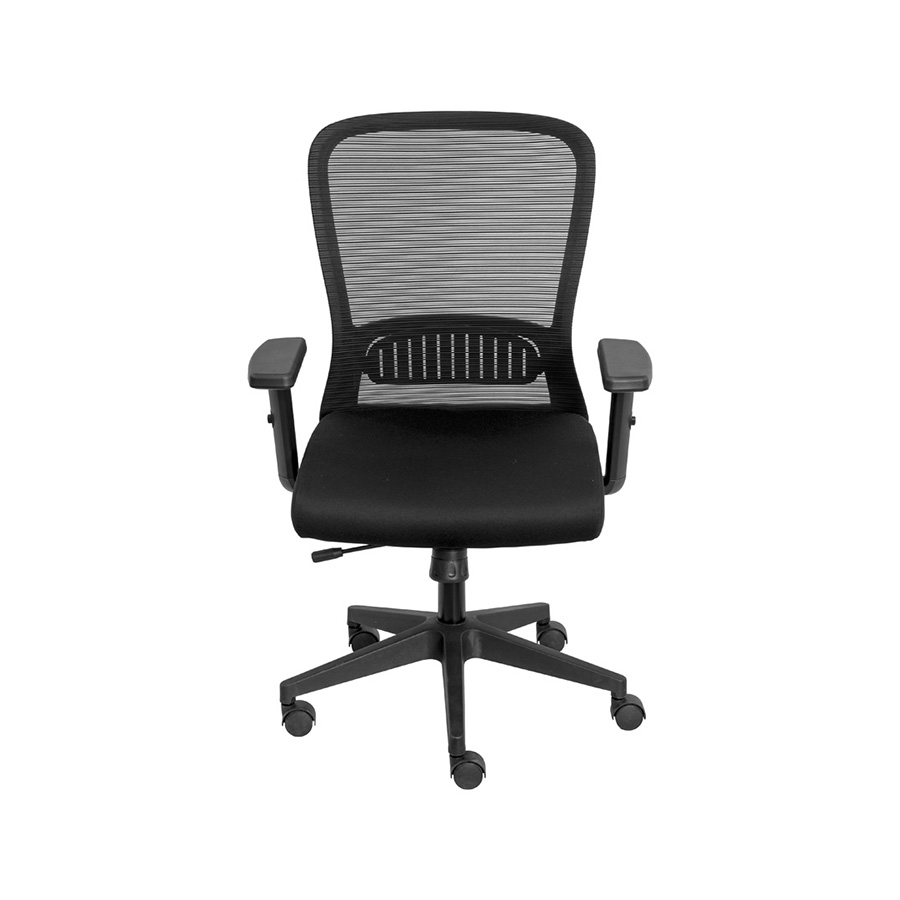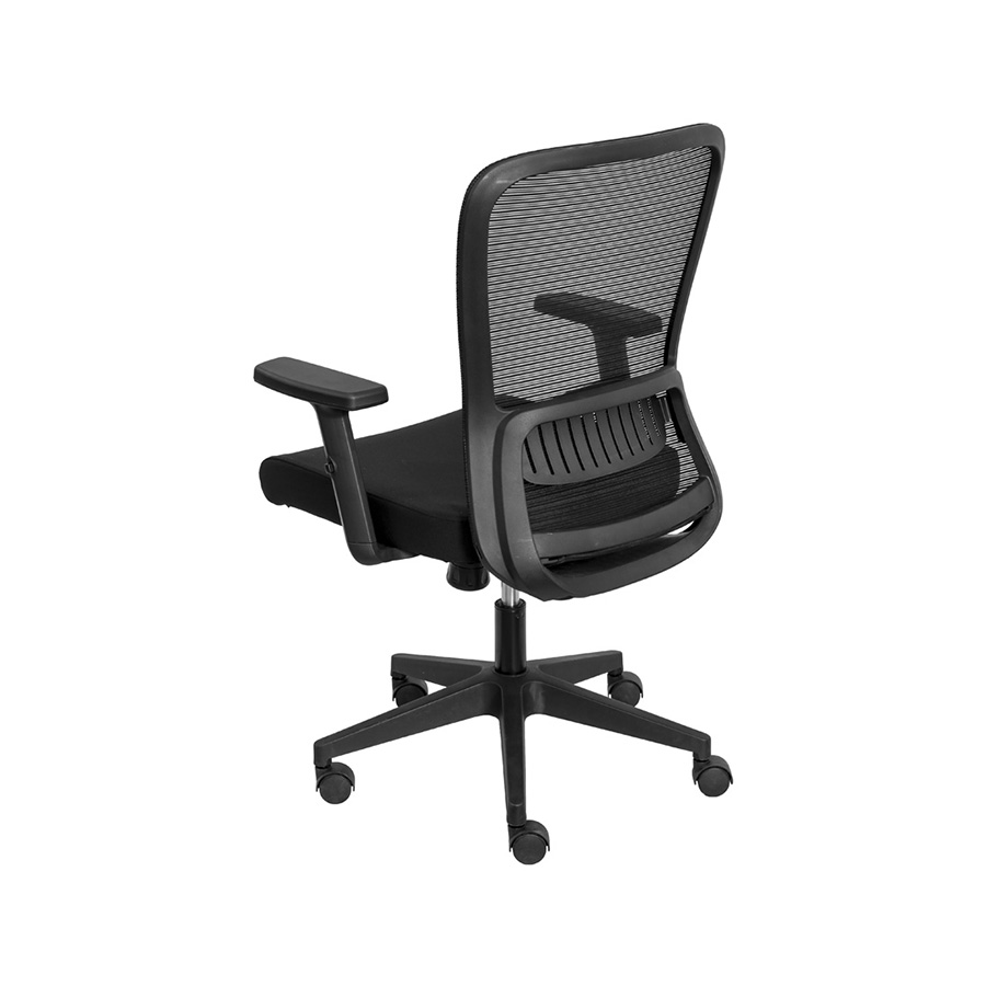 Assento em espuma injetada, encosto em tela com apoio lombar, ajuste de braços, ajuste de altura, com Sistema Relax, Sistema Syncron e Sistema Slide.