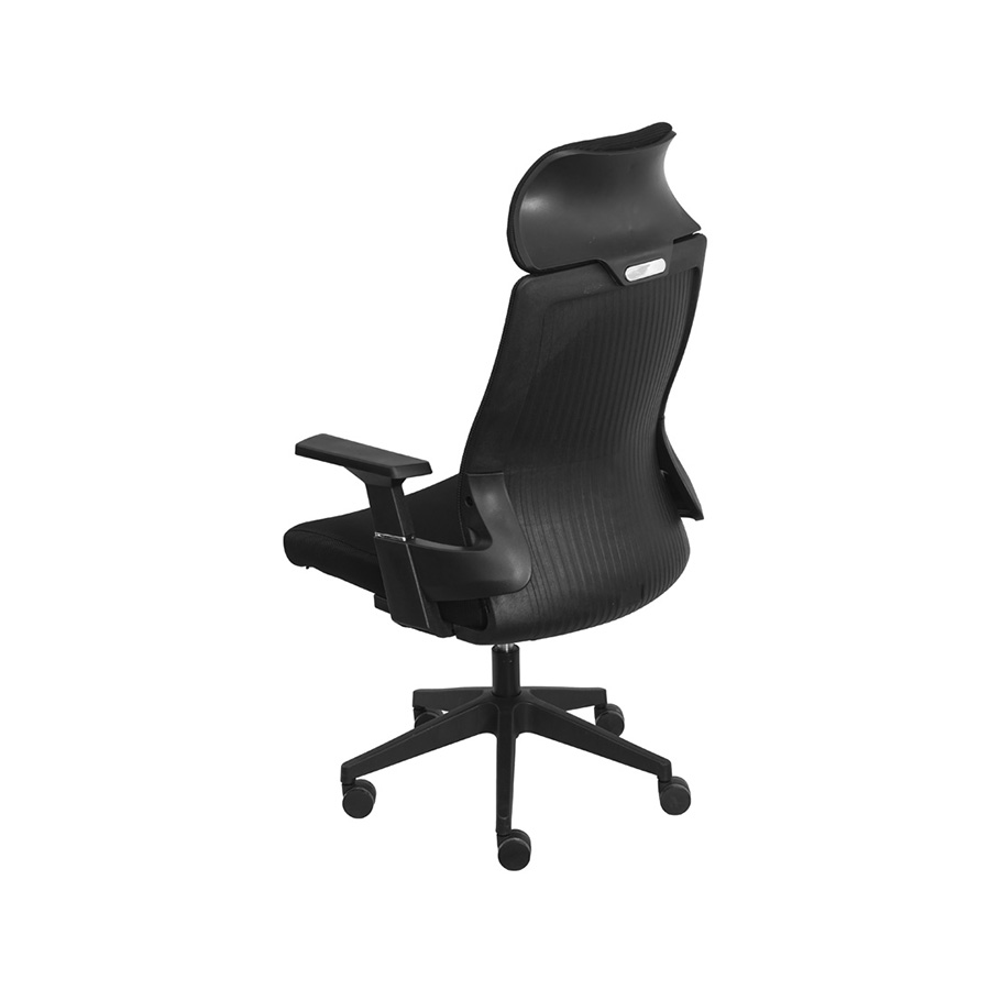 Assento em espuma injetada, encosto em tela, ajuste de altura e Sistema Relax.