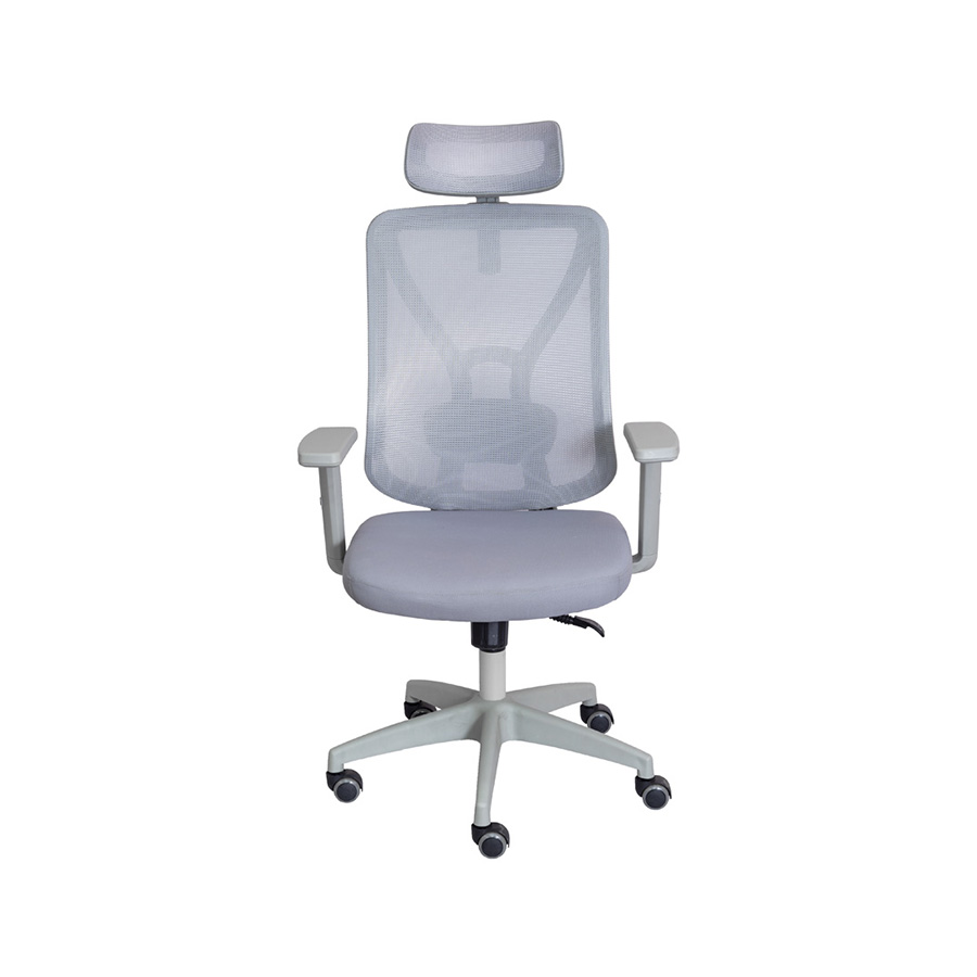 Assento em espuma injetada, encosto em tela com apoio lombar almofadado, apoio de cabeça regulável, ajuste de braços, ajuste de altura, Sistema Relax e Sistema Syncron.